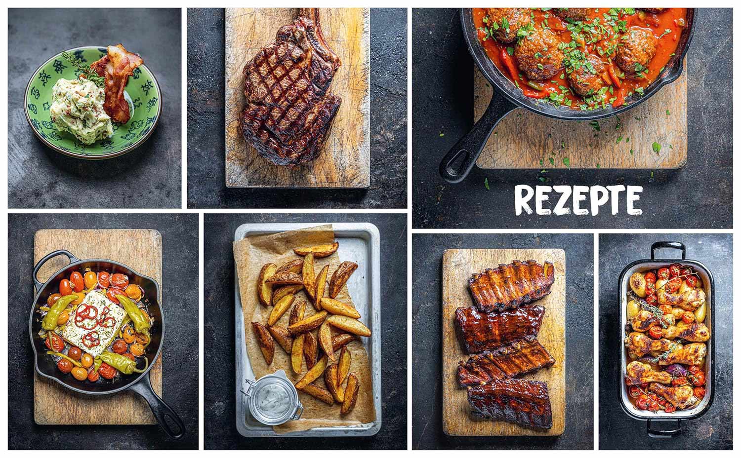 Nichts geht über herzhafte Leckerbissen, frisch vom Grill. Ob für sommerliche Gartenpartys oder gemütliches Wintergrillen im Kreis Ihrer Liebsten, lassen Sie sich von neuen Rezepten verwöhnen. Sagen Sie Grillwürstchen und abgepacktem Fleisch Lebwohl! Neben raffinierten Fleisch-, Fisch und Gemüsegerichten runden vielfältige Beilagen und Dips das Grillmenü ab. Wie wäre es mit Pulled Chicken Tacos und Garlic Fries oder doch lieber Memphis Style Spareribs und Bacon-Kräuterbutter vom Grill?